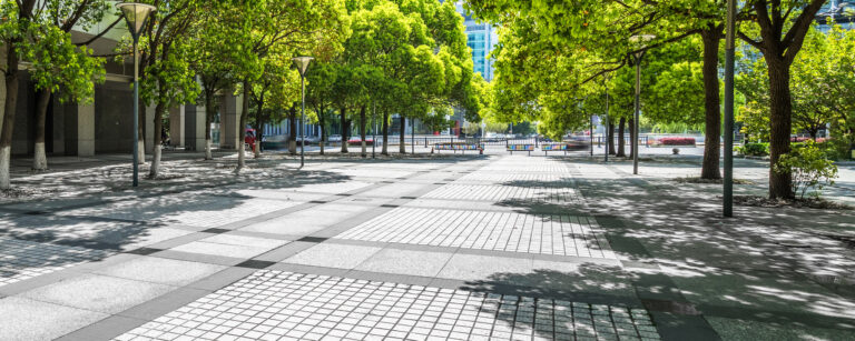 - Tree roots lifting sidewalks or parking lot surfaces, especially in older residential or commercial areas